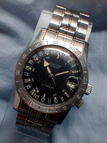 グリシン エアマン グリシン 2018.01.01 1970年代 Glycine Airman SS 自動巻 36mm 24時間表示の代表的な時計です。 文字盤・ケースともにとてもキレイな状態です。 右下のリューズでベゼルをロックします。