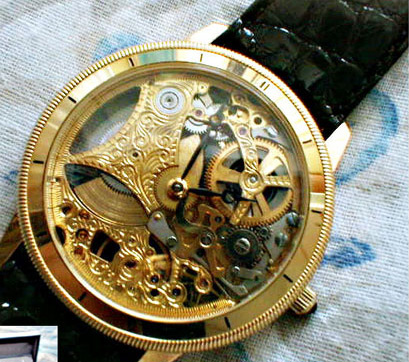 文字盤の内側はスケルトンになっており外周にローマ数字の